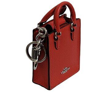 Coach Leather Mini Tote North South Red Bag Charm Keyring