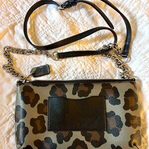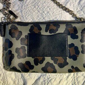 Coach Leather Gray Ocelot Quinn with Chain and Leather Cross Body strap. Excellent barely used condition with unique double sided hangtag. F35878. 8.5" x 6"