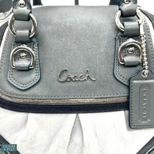 Classic Coach design with roomy interior, beautiful gray & black leather, and practical compartments—perfect for work or casual outings!