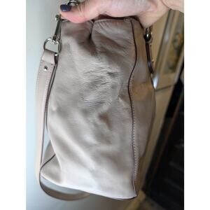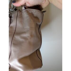 Coach Leather Satchel Taupe Greige Crossbody Bag Silver Hardware Zip Top Pockets