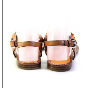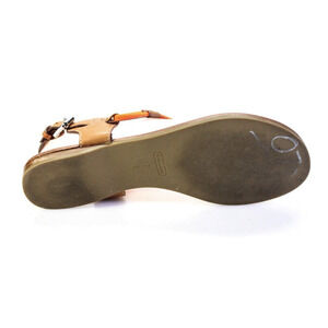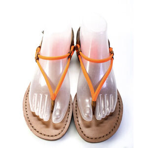 Coach Leather Thong Sandals T Strap Flats Neon Orange Brown 7