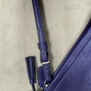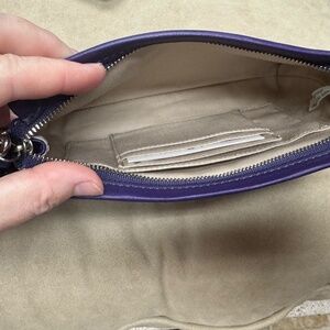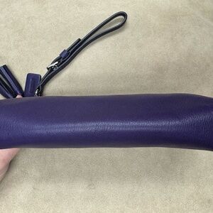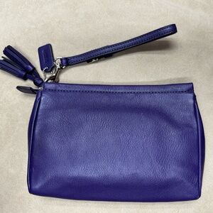 Gorgeous deep purple Coach leather wristlet — never used, excellent condition, elegant and timeless. Its compact yet functional design is perfect for carrying your essentials, phone, cards, and keys. Features signature Coach detailing, a zip-top closure, and a matching leather wrist strap for easy carry.