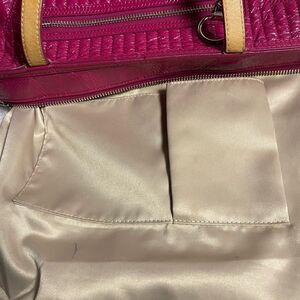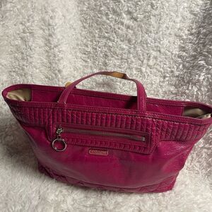 Coach Leather hot pink patent and quilted Medium Stylish Coach tote bag. leather. Features a front zipper pocket. Perfect for everyday use. Top zipper the inside lining has a side zipper two side pockets.Pre owned in good used condition the top zipper stopper was glued to avoid detachment see all pictures any questions please message. E10