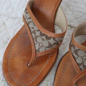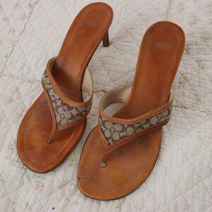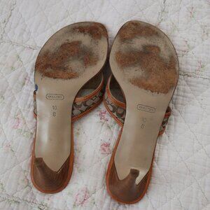 Coach Leather/Canvas Monogram Print Thong Heels Size 10