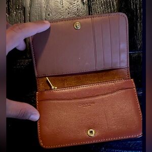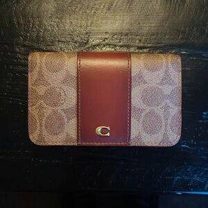 Coach Leather/Canvas Wallet With Signature Logo, Classic Style, Brown/Tan