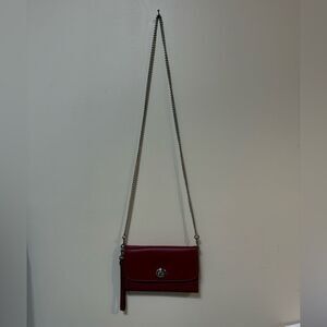 Coach Leather Chain Crossbody in Cherry Red/Silver NWT