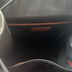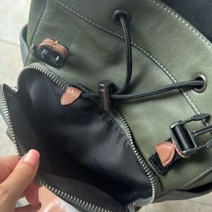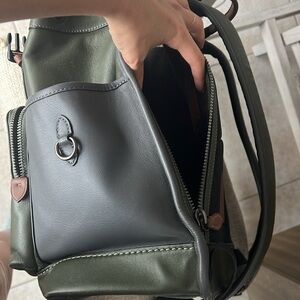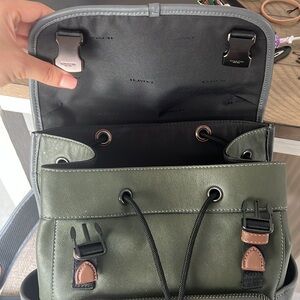 Brand new - never worn - no scratches/wear. Beautiful hunter green and charcoal grey backpack with brown leather accent. Very comfortable and perfect for travel - lots of compartments. Genuine leather - authentic Coach brand.