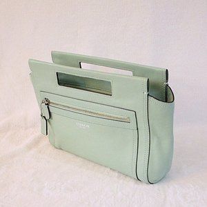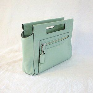 Coach Legacy Basket Clutch Mint Green Leather Zipper Top Handle