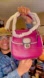 Stylish purple leather handbag with silver accents. Perfect for any occasion.