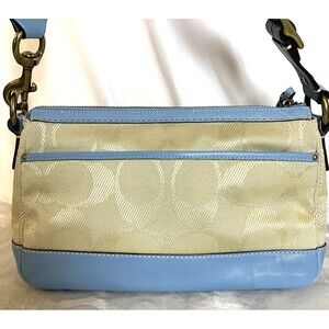 Coach Legacy F13102 65th Anniversary Signature Cream Blue Two Turnlock Bag Y2K.