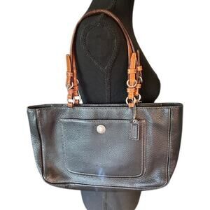 Coach Legacy Leather Tote Brown Pebbled Leather Shoulder Bag w/ Contrast Handles