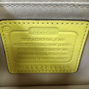 This is a Coach crossbody bag crafted from genuine glove-tanned leather in a bold yellow tone. Features include: