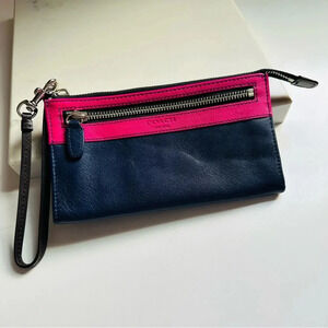 Coach Legacy LeatherColor Block Zippy Wallet Navy/Fuchsia