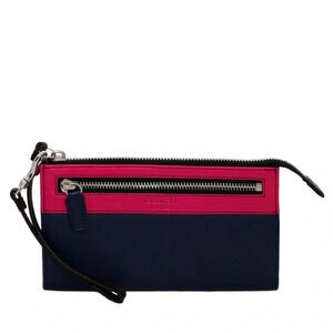 Coach Legacy LeatherColor Block Zippy Wallet Navy/Fuchsia