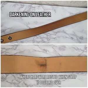 Black dark mark on strap where Leather had rested against the metal hardware when doubled over