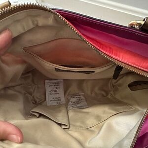 Coach Legacy multicolor striped sateen tote with matching wristlet.
