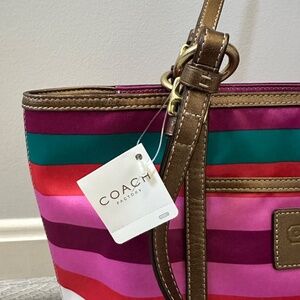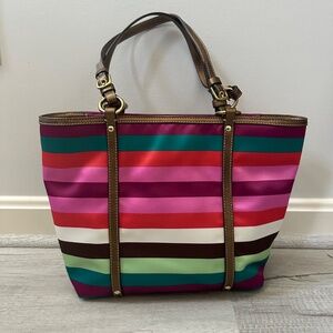 Coach Legacy Multicolor Stripe Sateen Tote Metallic Trim, F14009
