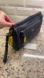 Navy leather with yellow leather tassels and yellow peek a boo perforation