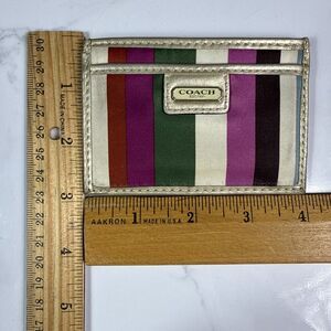 Coach Legacy North South Multicolor Stripe Champagne Leather Trim Card Case