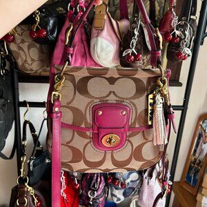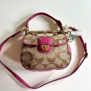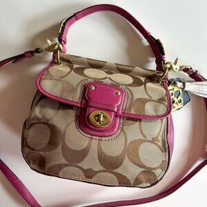 Coach Legacy Pink Leather Signature Large Willis Satchel Crossbody Strap