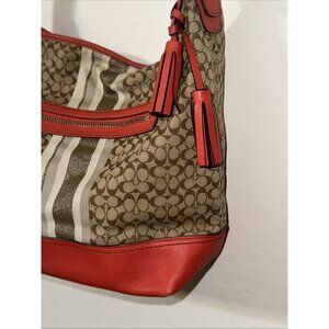 Coach Legacy Signature Stripe Orange Duffle Jacquard Leather Bag 19918