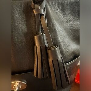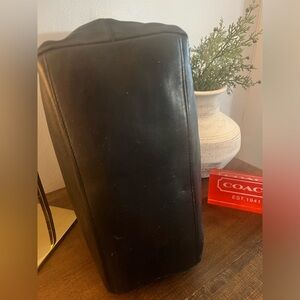 This Coach Legacy large tote is an all leather, stylish and functional tote The bag features a solid pattern and is made of very high-quality leather. The exterior has a front pocket with a turnlock closure to hold your accessible items (phone, keys, etc). The tote has a lobster claw closure. The interior is lined with a black fabric and has a spacious compartment that can hold your essentials. This Coach Legacy bag is a must-have for anyone who wants to add a touch of elegance to their wardrobe.