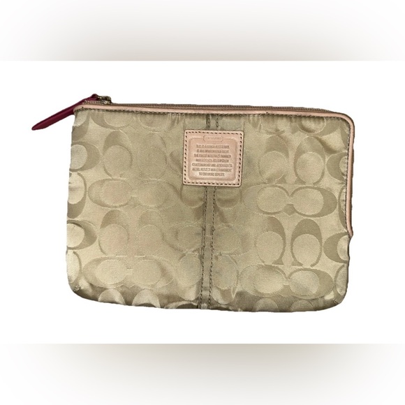 Coach Legacy Weekend Signature Nylon Sleeve Case Pouch Khaki Pink Accent