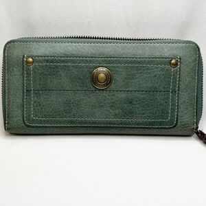 Coach Legacy Zip-Around Wallet Green Leather Brass Hardware