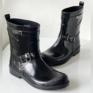 Coach Lester Shiny Rubber Round Toe Synthetic Rain Boot women’s size 7B black