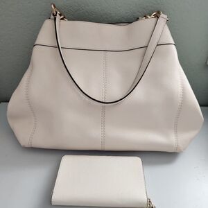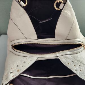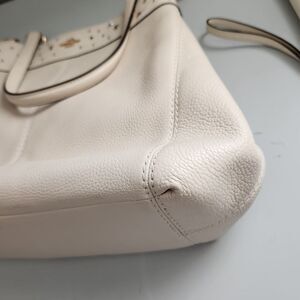 Polished Soft Pebble Leather Zipper & Magnet Closure Double Shoulder Straps Brown Polyester Lining 1 Interior Zipper Pocket 2 Interior Slip Pockets