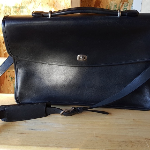 Gorgeous VTG 1996 Coach Lexington 5265 Black Leather Briefcase Messenger Bag Silver Hardware. Brand new, never used. Thick, quality leather that made Coach famous. Could be use as a laptop bag. Shoulder strap and inside zip pocket. Large pocket on back. Silver hardware was more rare in 1996. Comes with a Coach dust bag.