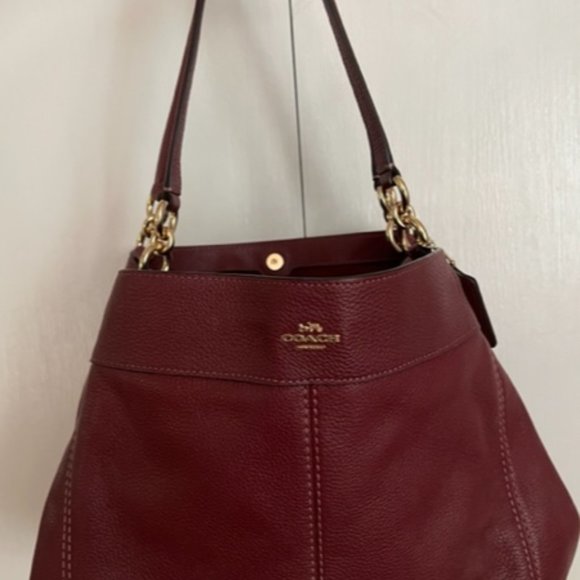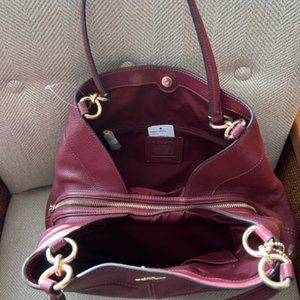 Never worn Coach shoulder bag, unique design in gorgeous, textured wine leather. Comfortable on the shoulder and flattering, medium size.