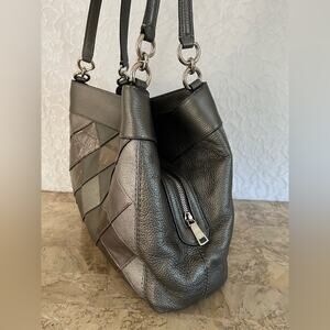 Coach Lexy patchwork/geometric metallic gray shoulder bag