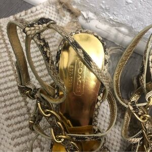 Coach Liberty Gold Python Embossed Chain Sandals Heels Shoes 6