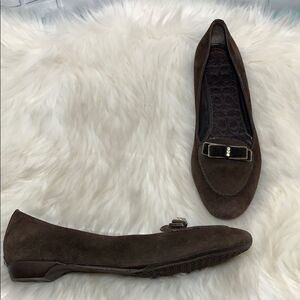 Coach Lidia Cappucino Brown Suede Flats Sz 10