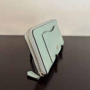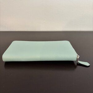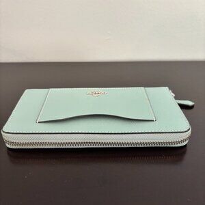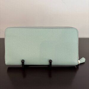 Coach Light Blue Crossgrain Leather Zip Around Accordion Wallet