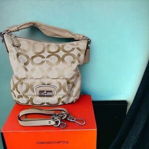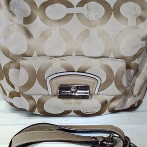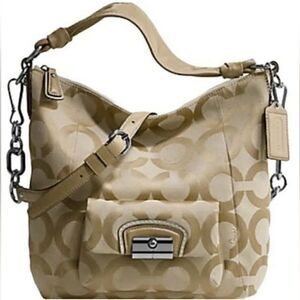 Coach Light Khaki Sand Kristin Signature Op Art Hobo Handbag 14911 Excellent