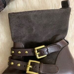 [Coach] Lilliana Brown Leather and Suede Moto Style Edgy Boots