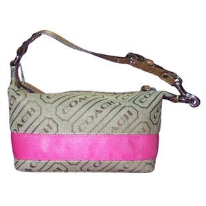Coach Limited Edition Canvas Leather Pink Stripe Demi Baguette bag wristlet Set