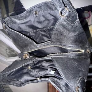 COACH 36519 Edie 31 Limited Edition Shoulder Bag, Quilted Pebbled Leather Patchwork with Unique Shape with a Middle Lock, Excellent used condition. Patchwork is of Black and Metallic Gray Leather and Black Suede; rest is black pebbled leather