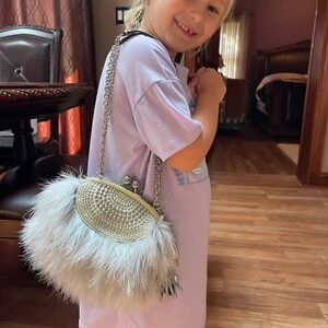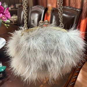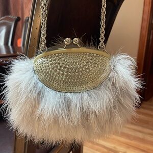This chic women's bag features a luxurious gray fur design with a stunning gold studded accent. Perfect for adding a touch of elegance to any outfit.New condition