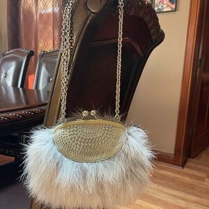 Coach Limited Edition Rare Ostrich Feather Gold Studded Women's Bag