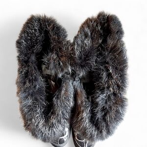 Light wear on soles, uppers in beautiful condition, faux fur plush and full, hardware intact. No major flaws.