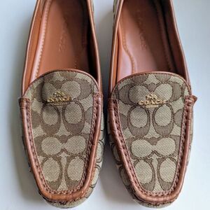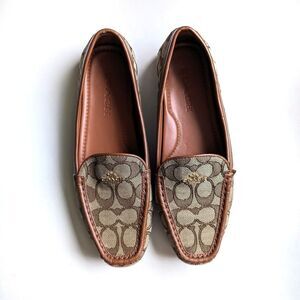 Coach Lock Up Driver Slip On Khaki Saddle Brown Loafers 8