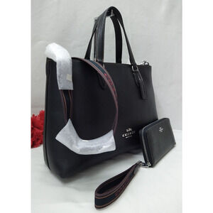 Coach Logan Carryall Black Pebbled Leather Satchel Bag W/ Matching Wallet - NWT