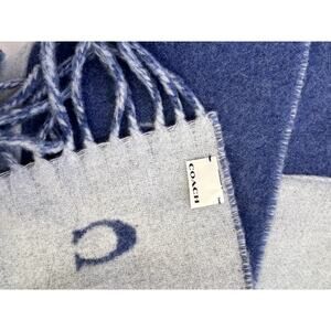 Coach Logo Blue Oversized Muffler Wool W.Pocket Shawl 80 inches