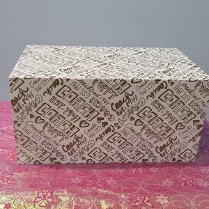 Stylish Coach box with iconic logo design. Perfect for miscellaneous things and more. Seems like an acrylic material. No cracks.