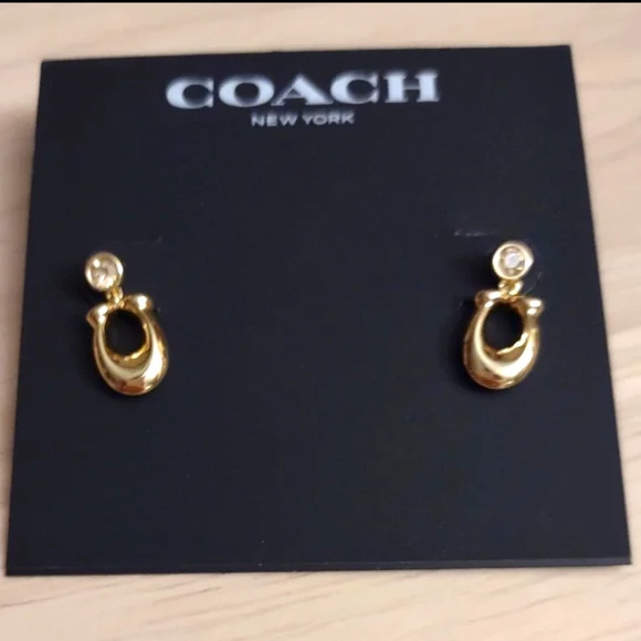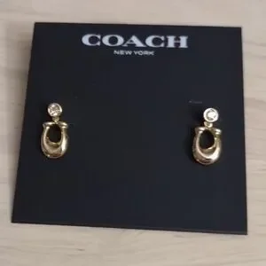 Coach Logo C Gold Crystal Earrings Y2K Bling