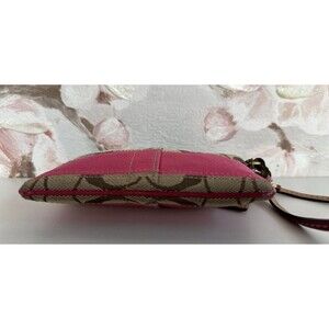 Coach Logo vintage brown and pink canvas zipper wristlet with gold charm and tag