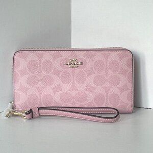 TAGS: coach, cw778, long wallet, zip around wallet, signature canvas, powder pink, wristlet, large wallet, womens wallet, designer wallet, coach wallet, new with tags, pink wallet, gift for her, classic style, everyday essential